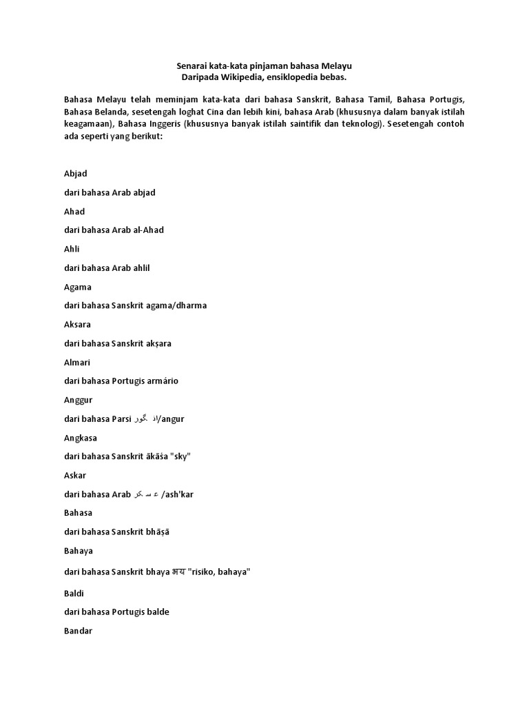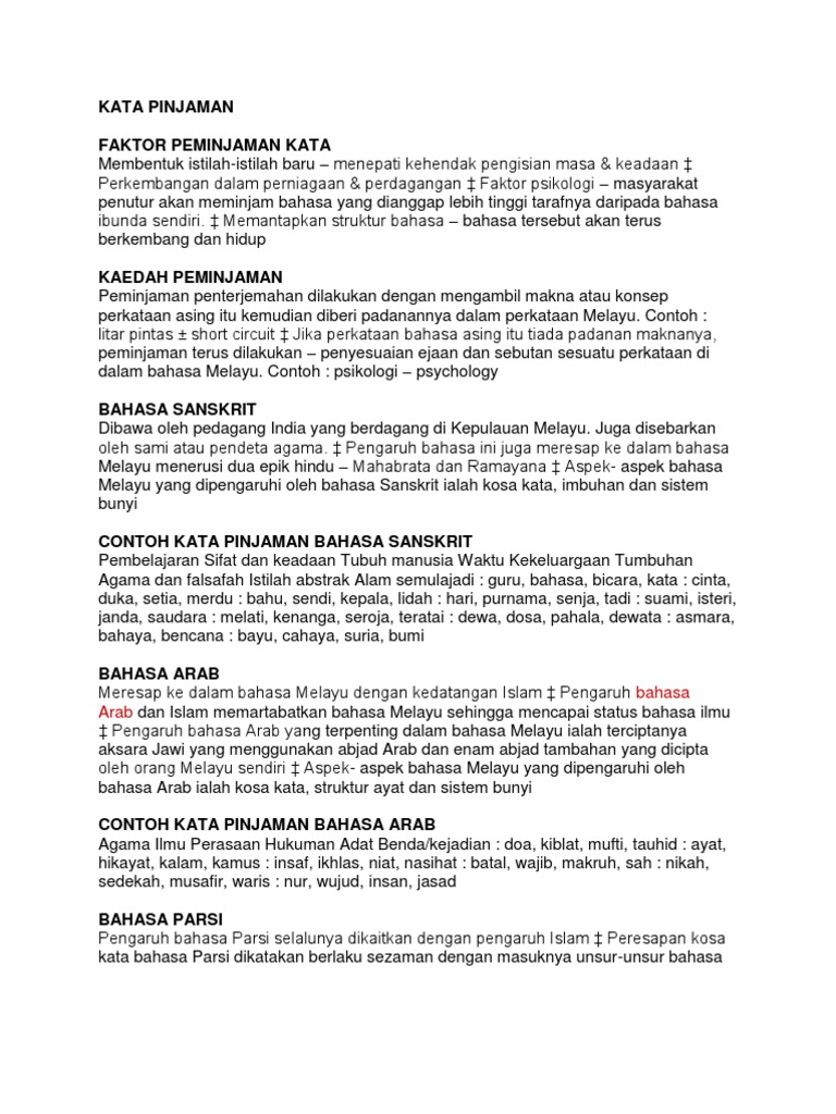 Nota Unsur Bahasa Asing Dalam Bahasa Melayu Pdf